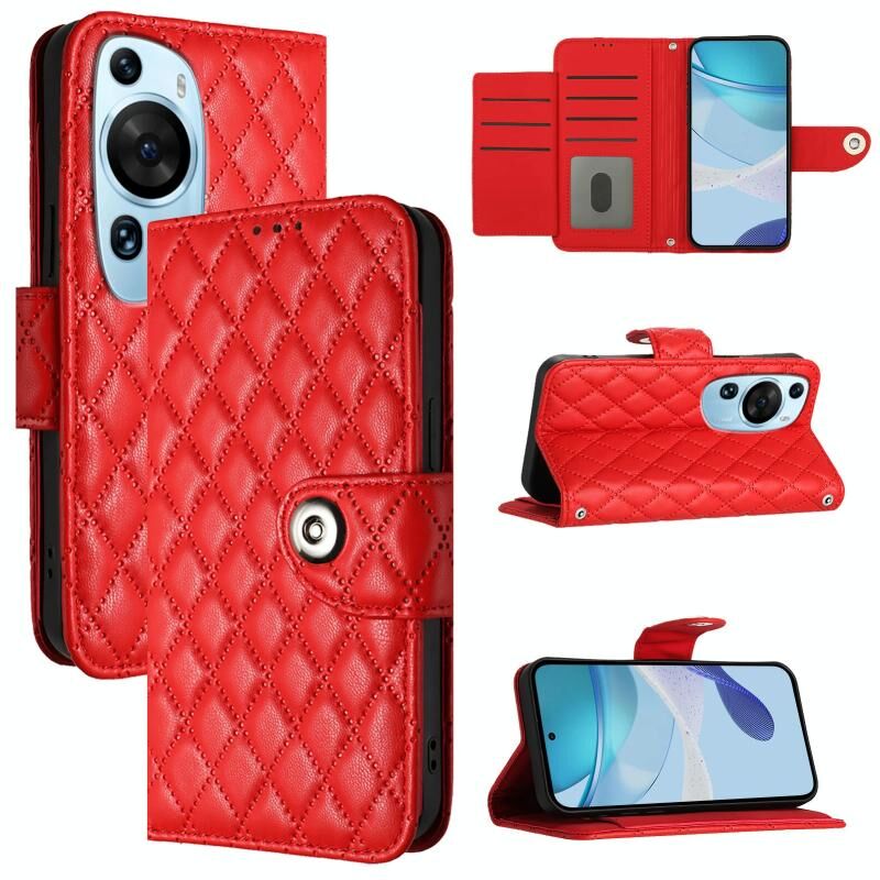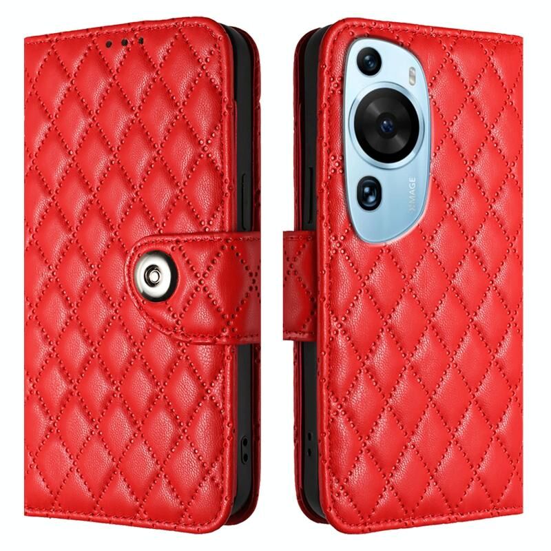 Για το Huawei P60 Art Rhombic Texture Flip δερμάτινη θήκη τηλεφώνου με κορδόνι (κόκκινο)