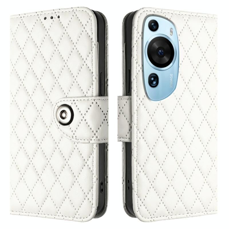 Για το Huawei P60 Art Rhombic Texture Flip δερμάτινη θήκη τηλεφώνου με κορδόνι (Λευκό)