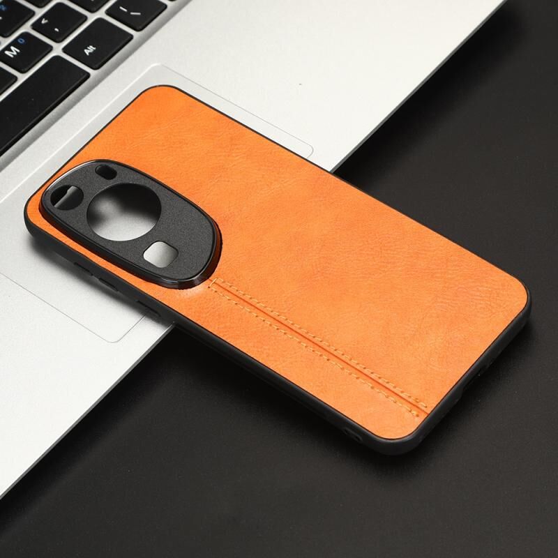 Για Huawei P60 Τέχνη ραπτικής αγελάδα μοτίβο δέρματος PC + PU + TPU τηλέφωνο υπόθεση (πορτοκαλί)