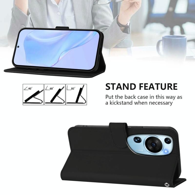 Για το Huawei P60 Art Skin Feel Solid Color Leather Phone Case με κορδόνι (Μαύρο)