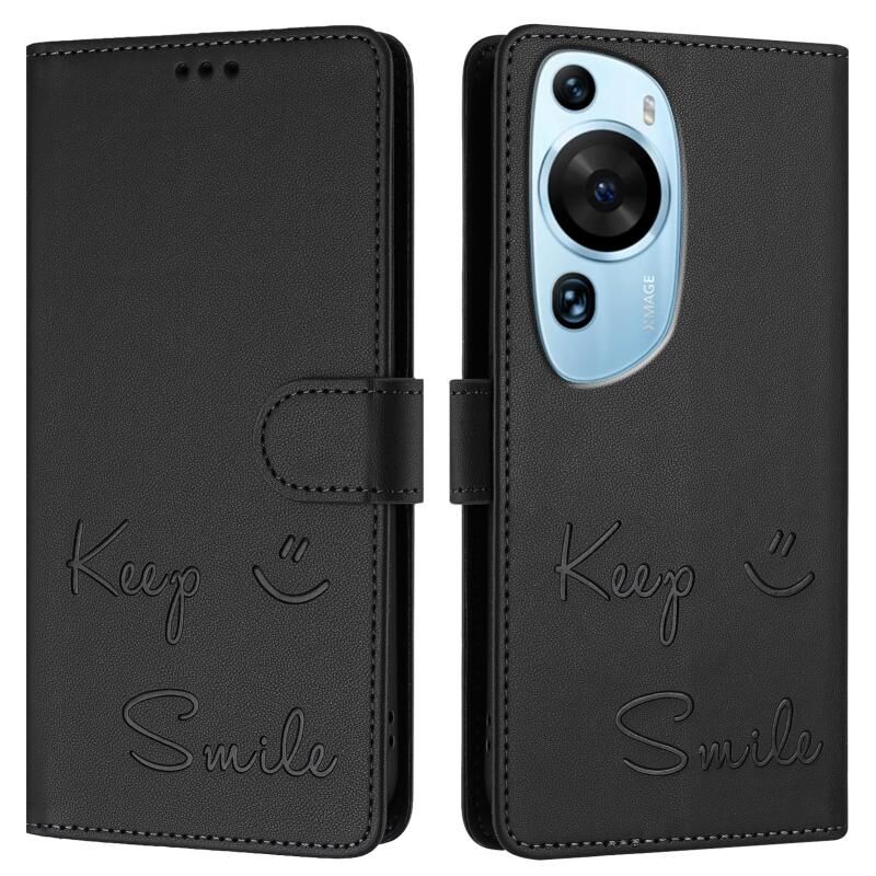 Για Huawei P60 Τέχνη χαμόγελο ανάγλυφο RFID δερμάτινη θήκη τηλεφώνου (Μαύρο)