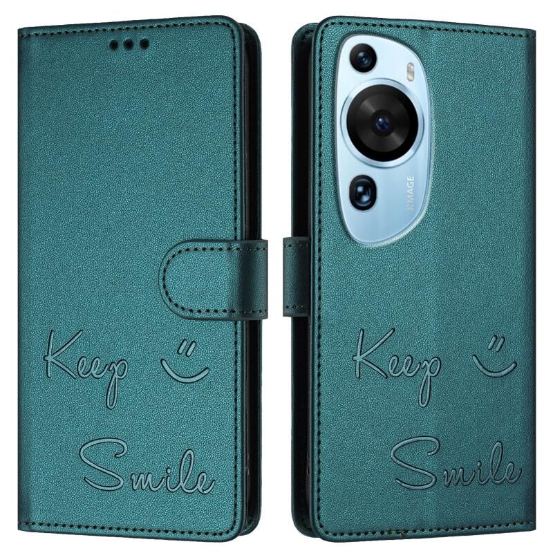 Για Huawei P60 Τέχνη χαμόγελο ανάγλυφο RFID δερμάτινη θήκη τηλεφώνου (Peacock Green)