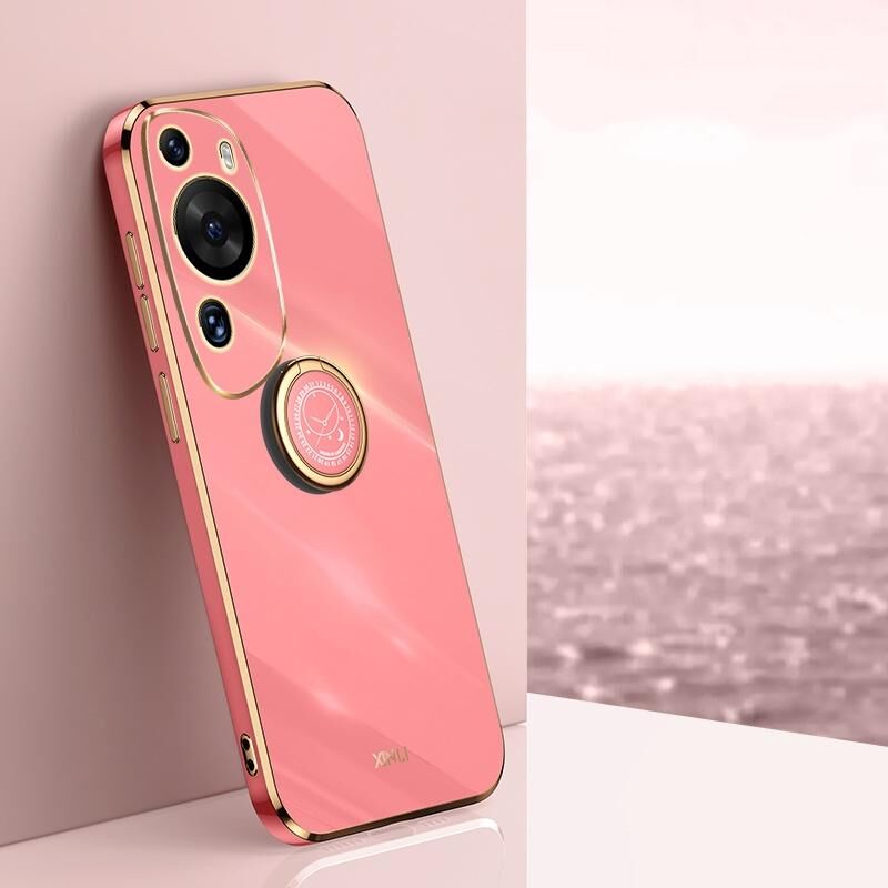 Για Huawei P60 Art XINLI Straight Edge 6D Electroplate TPU υπόθεση τηλεφώνου με κάτοχο δαχτυλίδι (Hawthorn Red) (XINLI)
