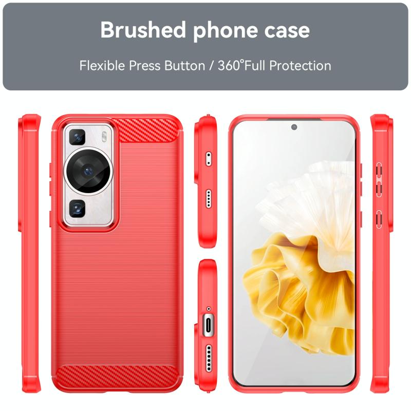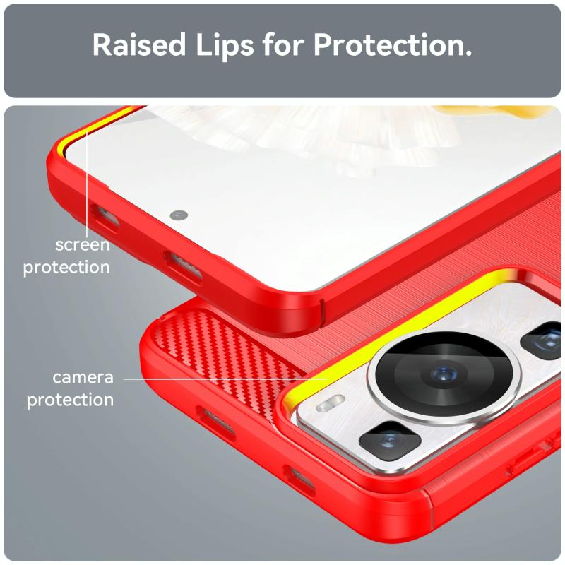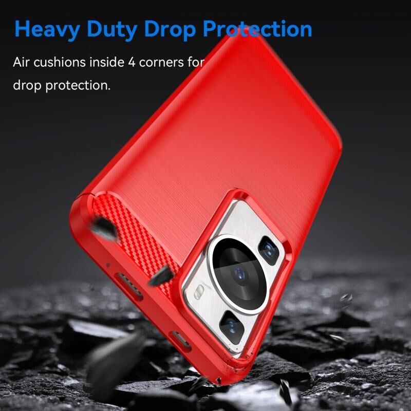 Θήκη τηλεφώνου Huawei P60 από TPU με υφή βουρτσισμένου ανθρακονήματος (Κόκκινο)