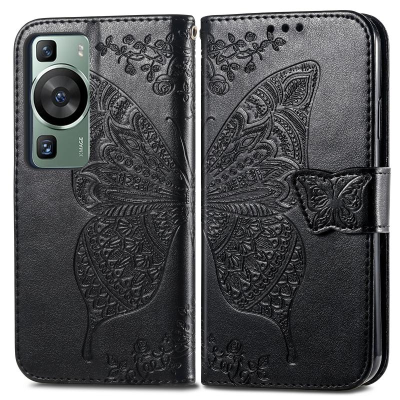 For Huawei P60 Butterfly Love Flower Embossed Leather Phone Case(Black)