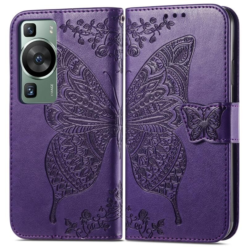Θήκη τηλεφώνου Huawei P60 Butterfly Love Flower Embossed Leather (Μπλε)