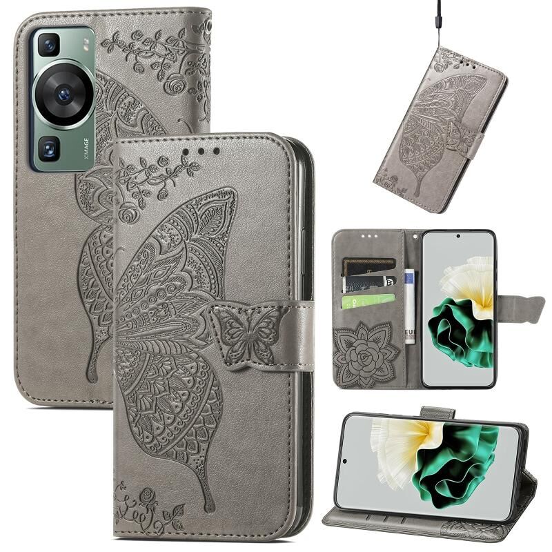 Θήκη τηλεφώνου Huawei P60 Butterfly Love Flower Embossed Leather (Μπλε)
