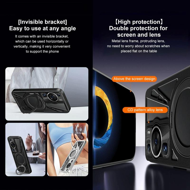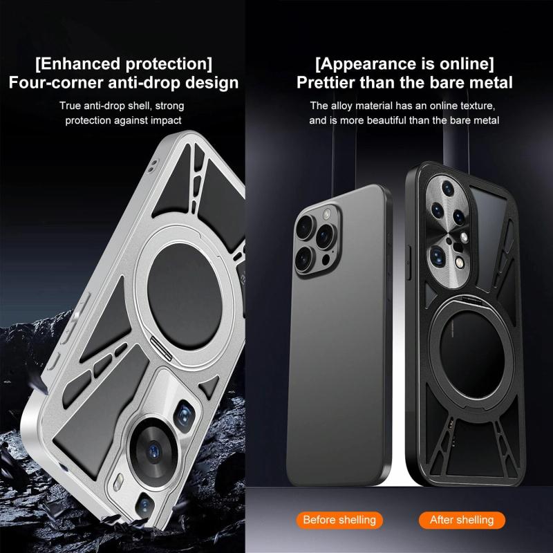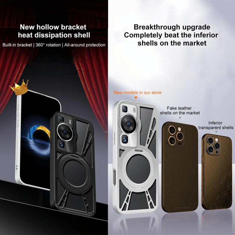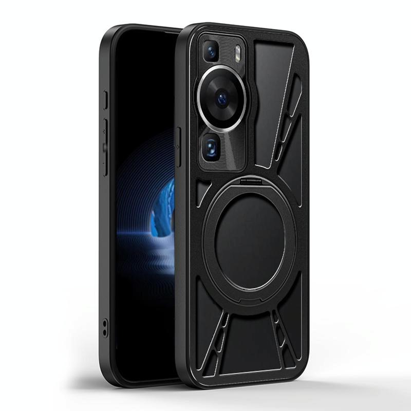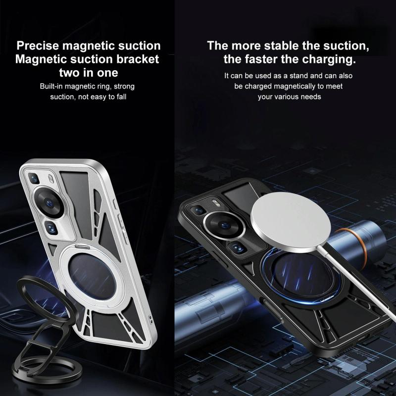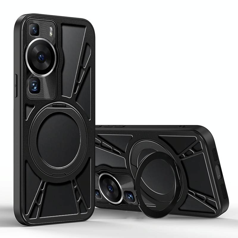 For Huawei P60 Cooling Hollow Metal Holder MagSafe Phone Case(Black)