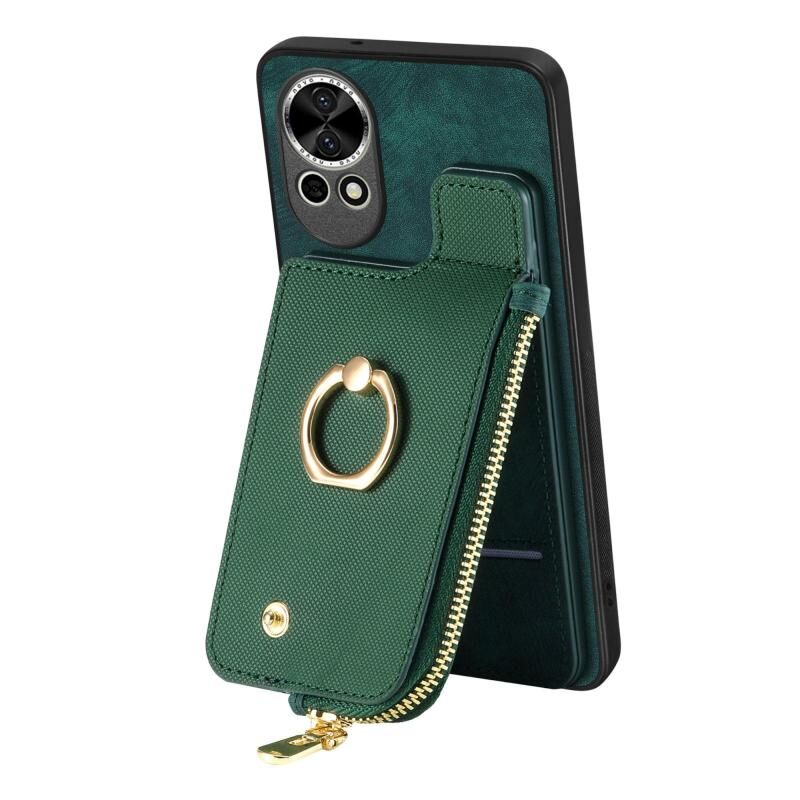 Θήκη Huawei P60 Cross Leather με Δαχτυλίδι & Κάθετο Φερμουάρ Πορτοφολιού (Πράσινο)