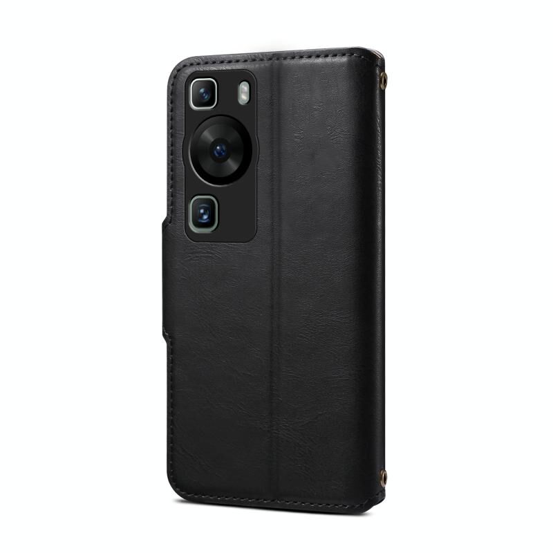 Για Huawei P60 Denior Cowhide Υφή πορτοφόλι στυλ δερμάτινη θήκη τηλεφώνου (μαύρο) (Denior)