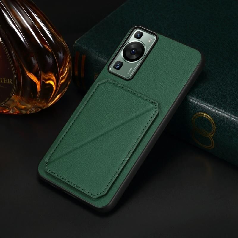 Για Huawei P60 / P60 Pro D04 Calf Υφή διπλή κάρτα Slot κάτοχος υπόθεση τηλεφώνου (πράσινο)