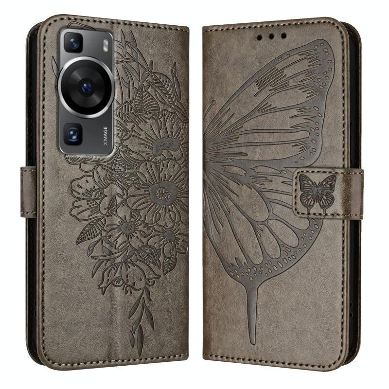 Για Huawei P60 / P60 Pro ανάγλυφη πεταλούδα δερμάτινη θήκη τηλεφώνου (γκρι)
