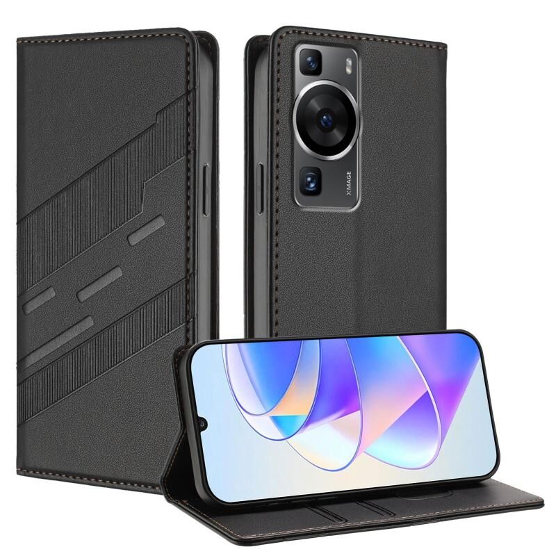 Θήκη τηλεφώνου Huawei P60 / P60 Pro ανάγλυφη, πολυλειτουργική, πορτοφόλι από δέρμα σε ρετρό στυλ (Μαύρο)