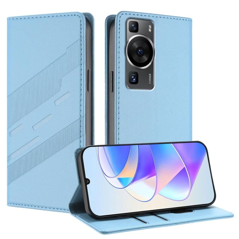 Θήκη τηλεφώνου Huawei P60 / P60 Pro ανάγλυφη, πολυλειτουργική, πορτοφόλι από δέρμα σε ρετρό στυλ (Ανοιχτό μπλε)