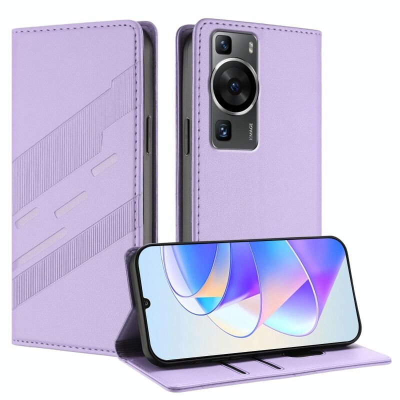 Θήκη τηλεφώνου Huawei P60 / P60 Pro ανάγλυφη, πολυλειτουργική, πορτοφόλι από δέρμα σε ρετρό στυλ (ανοιχτό μωβ)