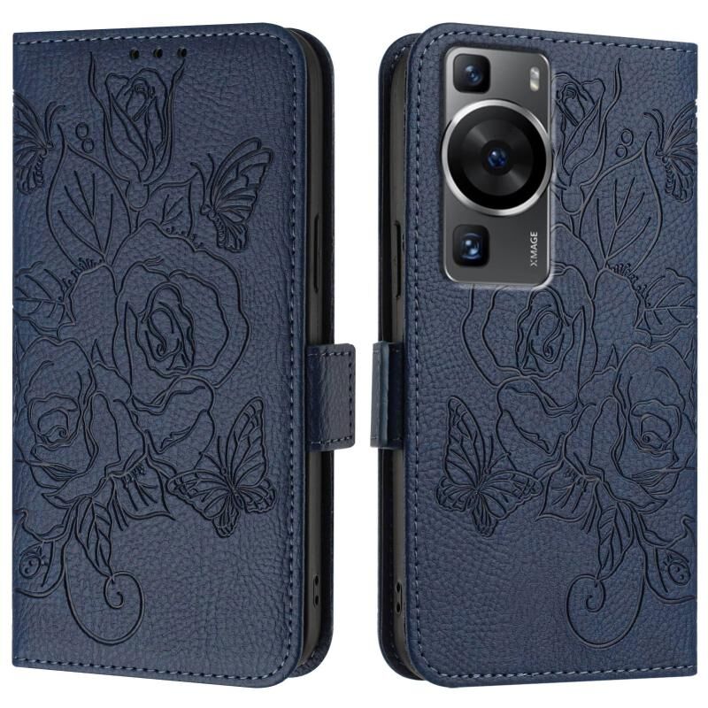 Για Huawei P60 / P60 Pro ανάγλυφο Rose RFID Anti-theft δερμάτινη θήκη τηλεφώνου (σκούρο μπλε)