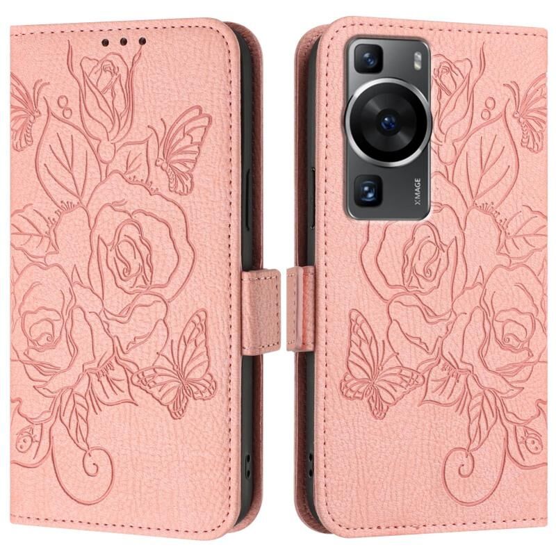 Για Huawei P60 / P60 Pro ανάγλυφο Rose RFID Anti-theft δερμάτινη θήκη τηλεφώνου (ροζ)