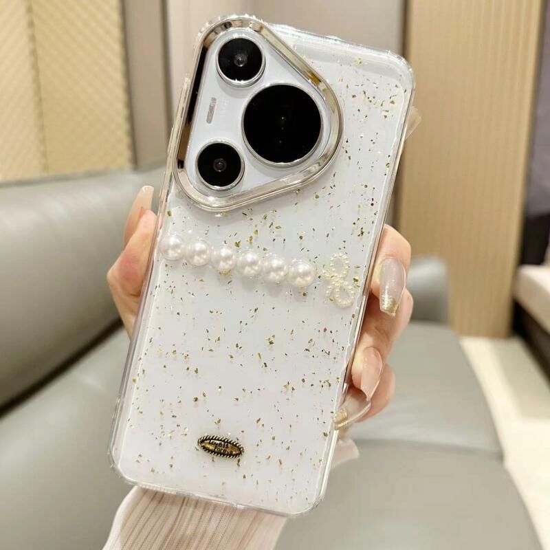 Για Huawei P60 / P60 Pro Gold Foil Pearl Bow TPU υπόθεση τηλεφώνου (Gold Foil Pearl)