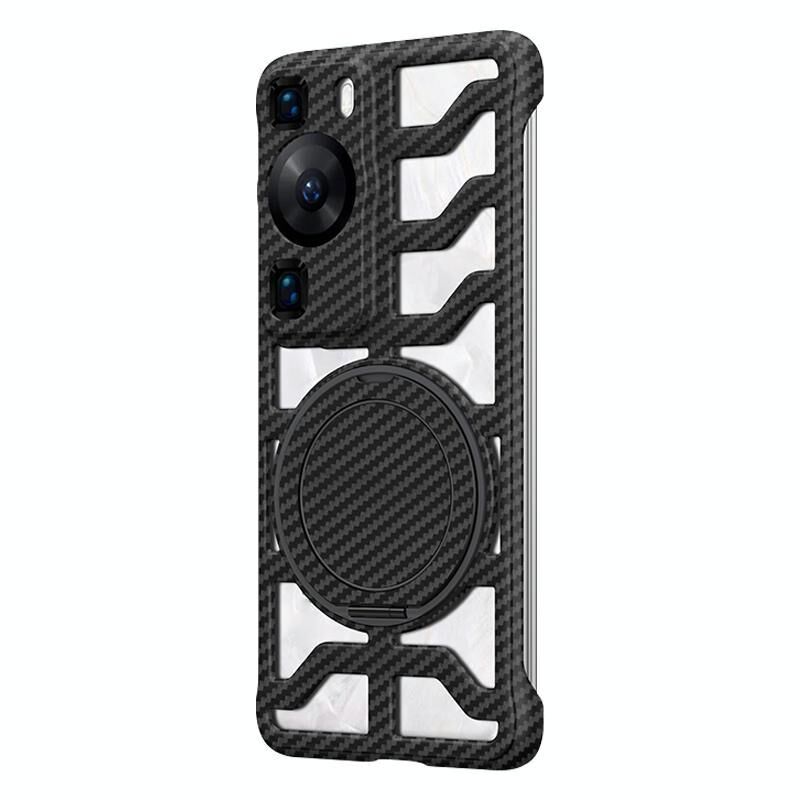 For Huawei P60 / P60 Pro Hollow Carbon Fiber Rotating Bracket MagSafe Phone Case(Black)