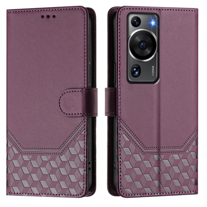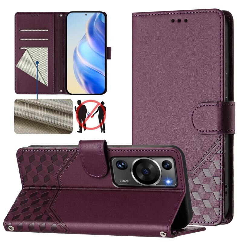 Για Huawei P60 / P60 Pro Honeycomb ανάγλυφο RFID δερμάτινη θήκη τηλεφώνου (Violet)