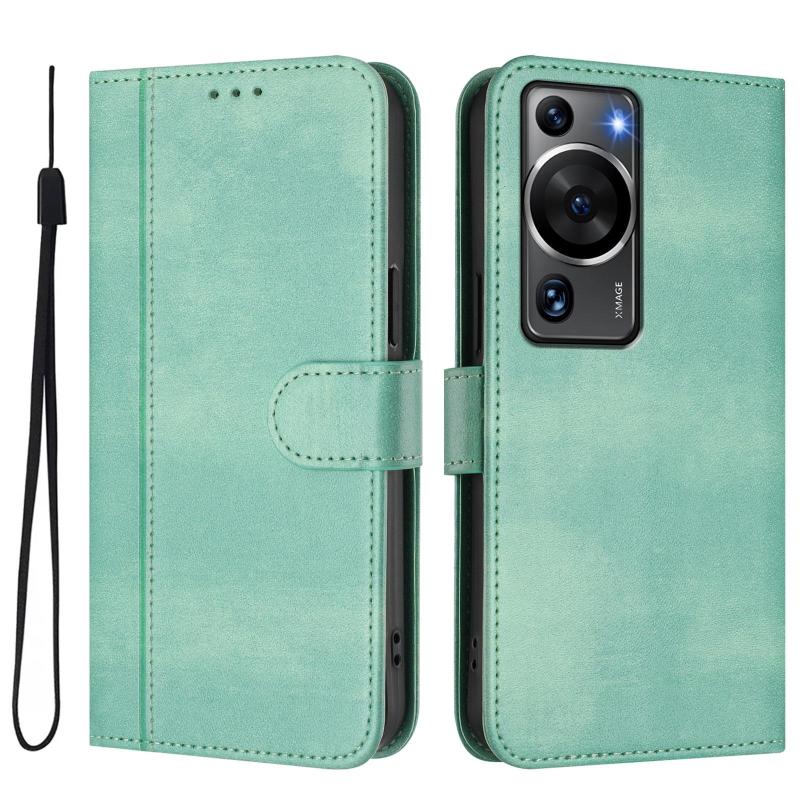 For Huawei P60 / P60 Pro Line Splicing Buckle Retro Leather Phone Case(Mint Green)