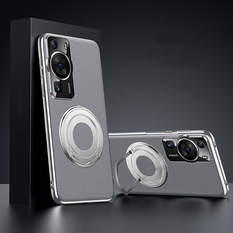 Θήκη τηλεφώνου Huawei P60 / P60 Pro από απλό δέρμα με υδρική μεταλλική βάση MagSafe (Γκρι)