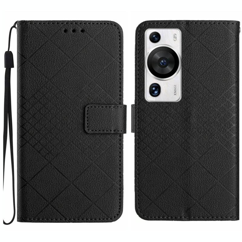 Για Huawei P60 / P60 Pro Rhombic Grid Texture Δερμάτινη θήκη τηλεφώνου (Μαύρο)