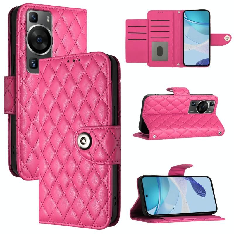 Για το Huawei P60 / P60 Pro Rhombic Texture Flip δερμάτινη θήκη τηλεφώνου με κορδόνι (Ροζέ κόκκινο)