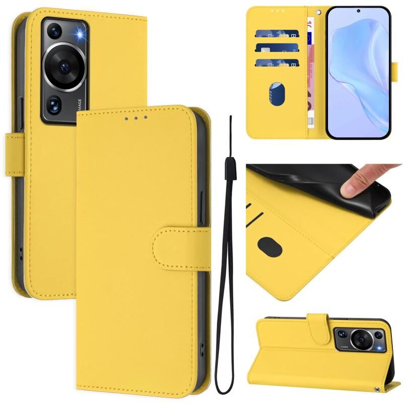 Για το Huawei P60 / P60 Pro Skin Feel στερεό χρώμα δερμάτινη θήκη τηλεφώνου με κορδόνι (κίτρινο λεμόνι)