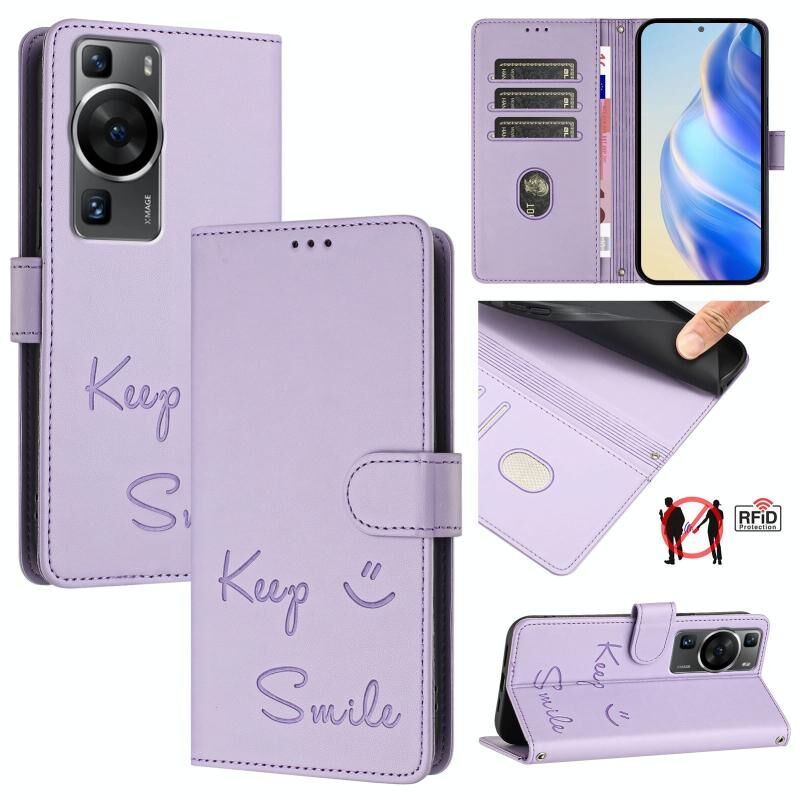 Για Huawei P60 / P60 Pro Χαμόγελο ανάγλυφο RFID δερμάτινη θήκη τηλεφώνου (Light Purple)