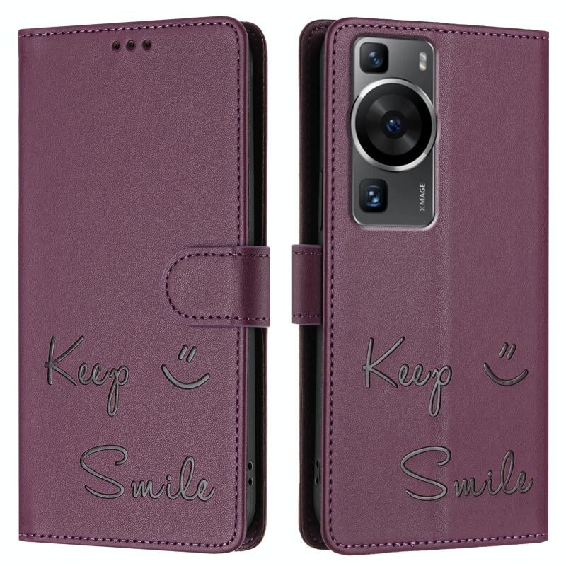 Για Huawei P60 / P60 Pro Χαμόγελο ανάγλυφο RFID δερμάτινη θήκη τηλεφώνου (Violet)