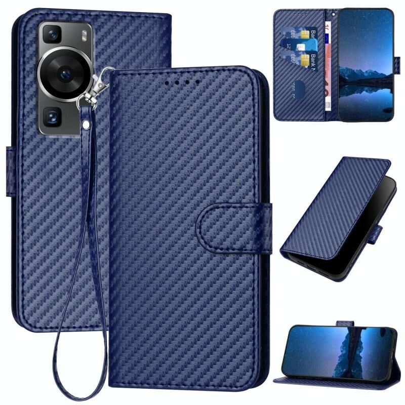 Για Huawei P60 / P60 Pro YX0070 Carbon Fiber πόρπη δερμάτινη θήκη τηλεφώνου με κορδόνι (Royal Blue)