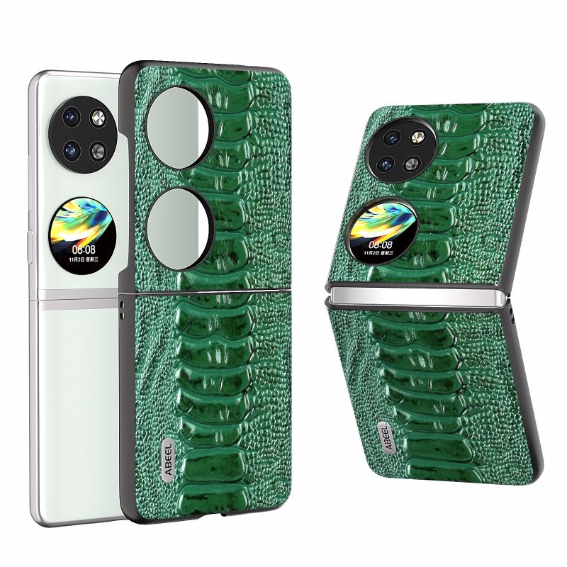 For Huawei P60 Pocket ABEEL Genuine Leather Weilai Series Phone Case(Green)
