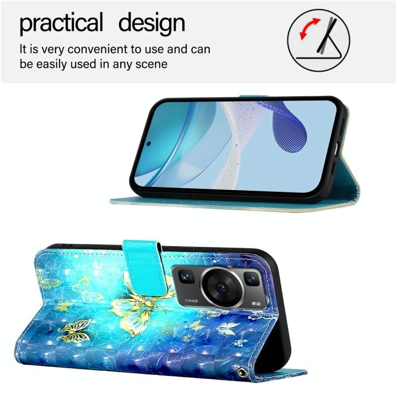 Θήκη τηλεφώνου από δέρμα με οριζόντια αναδίπλωση και τρισδιάστατη ζωγραφική για Huawei P60 Pro (Χρυσή Πεταλούδα)