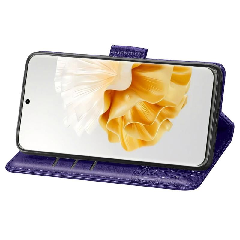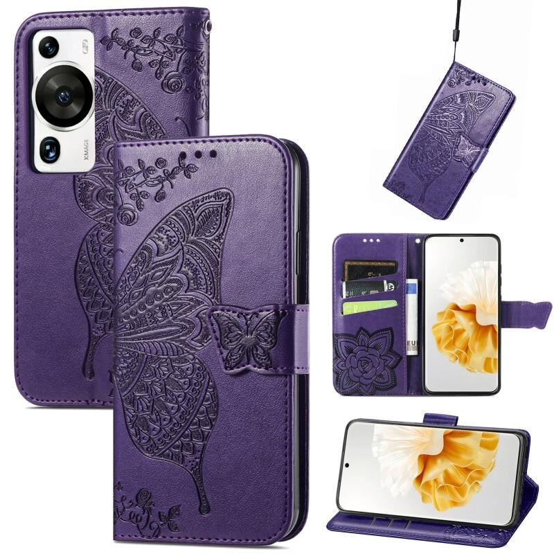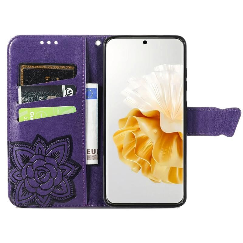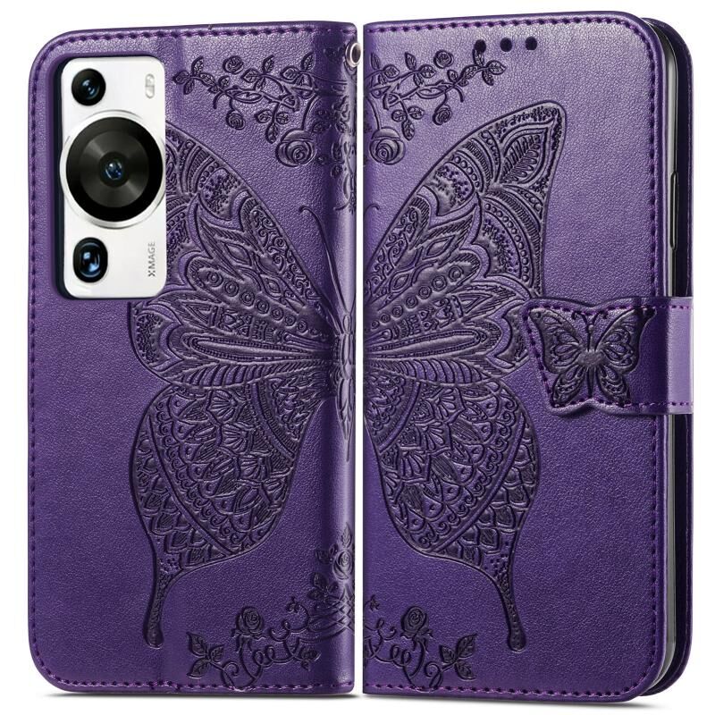 Θήκη τηλεφώνου Huawei P60 Pro Butterfly Love Flower Embossed Leather (Σκούρο μωβ)