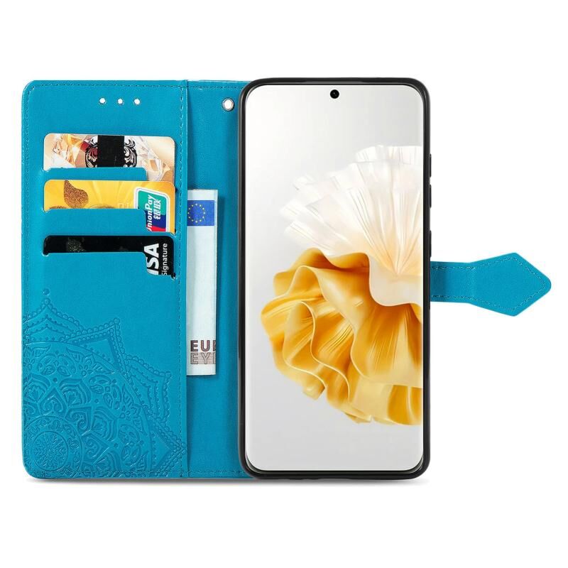Για Huawei P60 Pro Mandala λουλούδι ανάγλυφο δερμάτινη θήκη τηλεφώνου (μπλε)