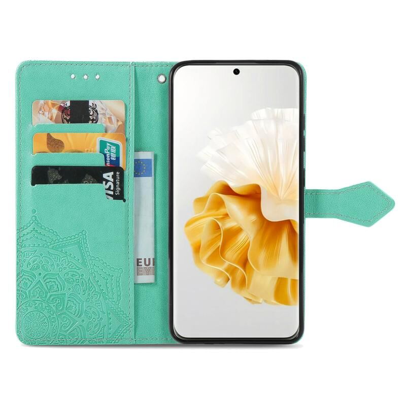 Για Huawei P60 Pro Mandala λουλούδι ανάγλυφο δερμάτινη θήκη τηλεφώνου (πράσινο)