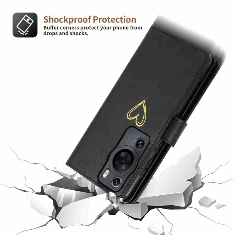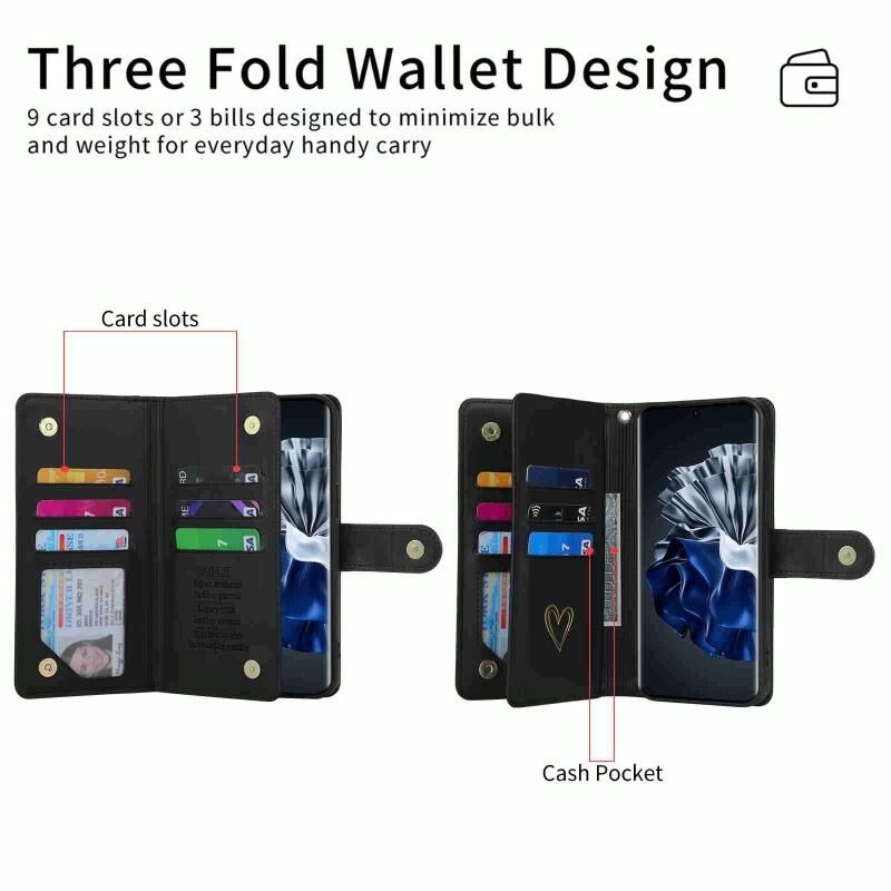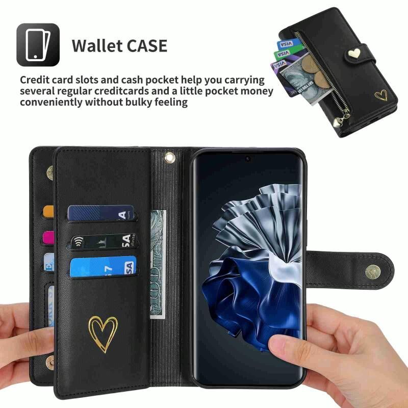 Για το Huawei P60 Pro POLA Love Multi-Card Slots φερμουάρ πορτοφόλι δερμάτινη θήκη τηλεφώνου (μαύρο) (POLA)