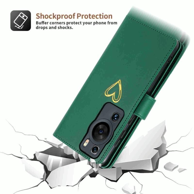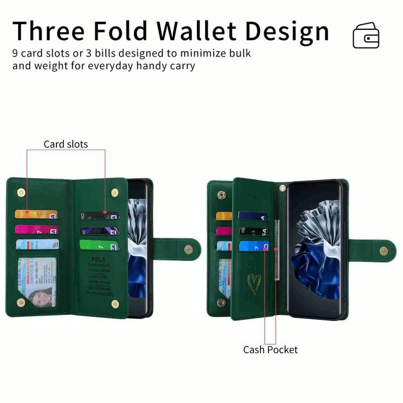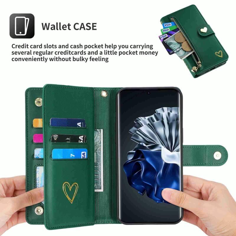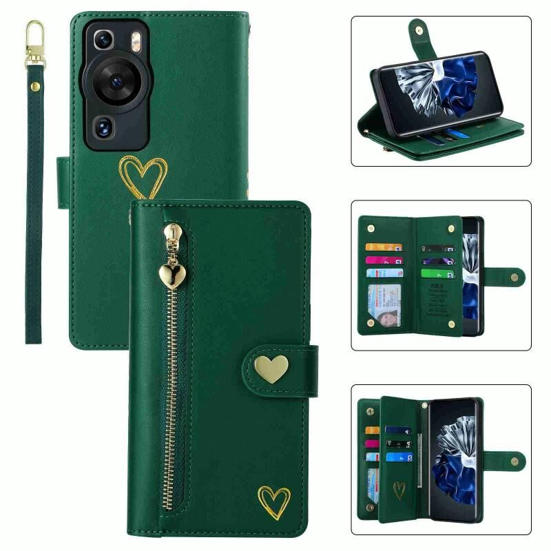 Για το Huawei P60 Pro POLA Love Multi-Card Slots φερμουάρ πορτοφόλι δερμάτινη θήκη τηλεφώνου (σκούρο πράσινο) (POLA)