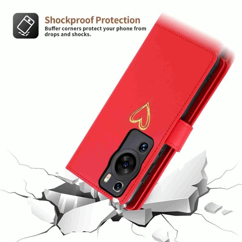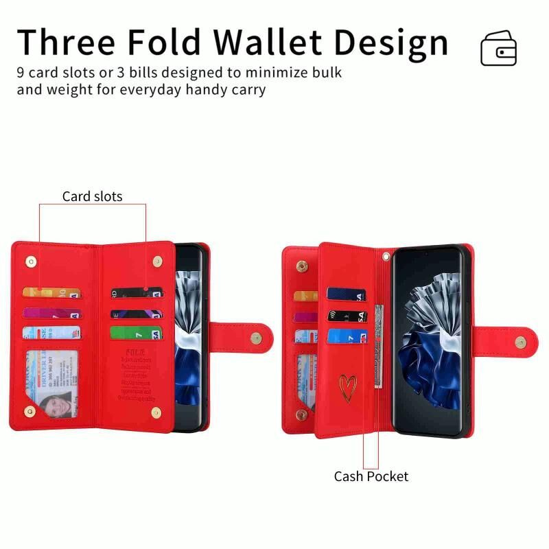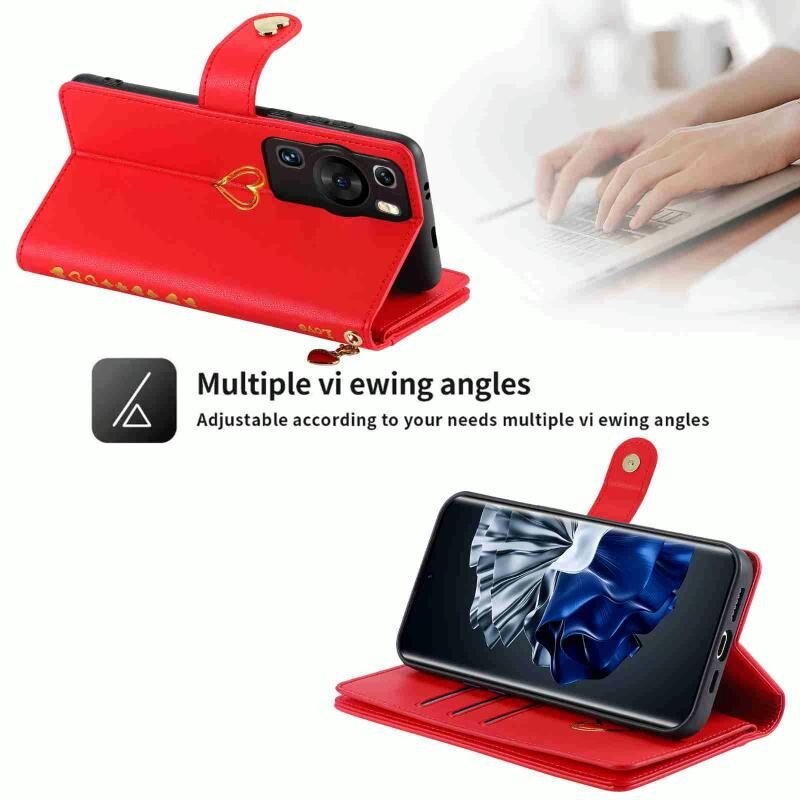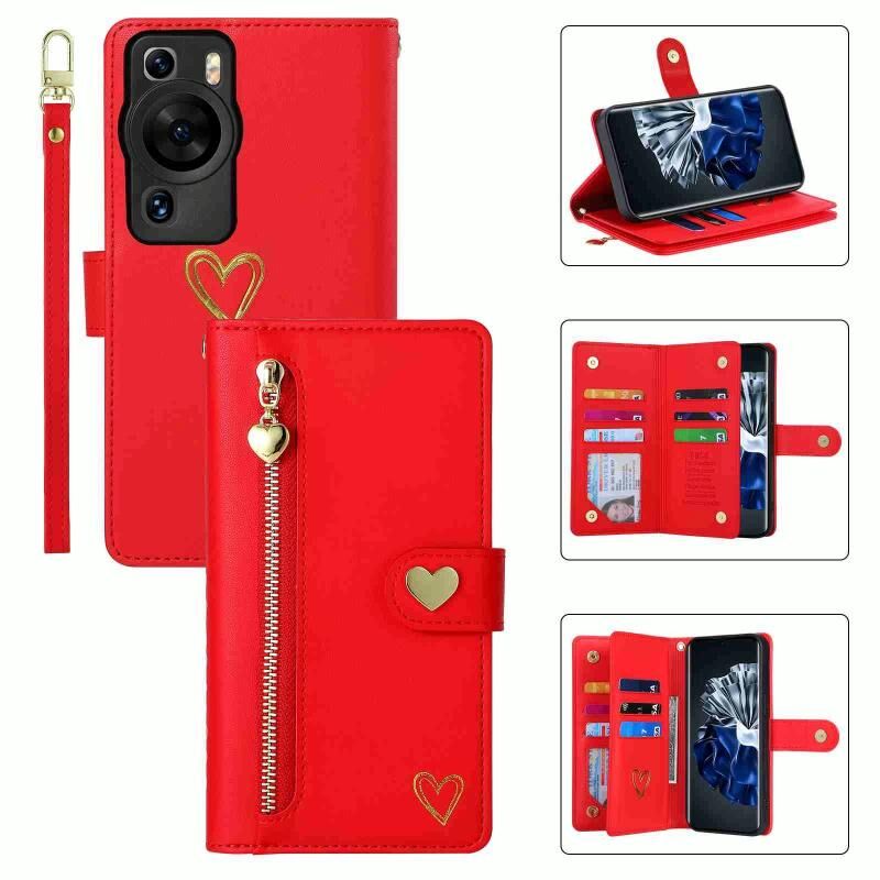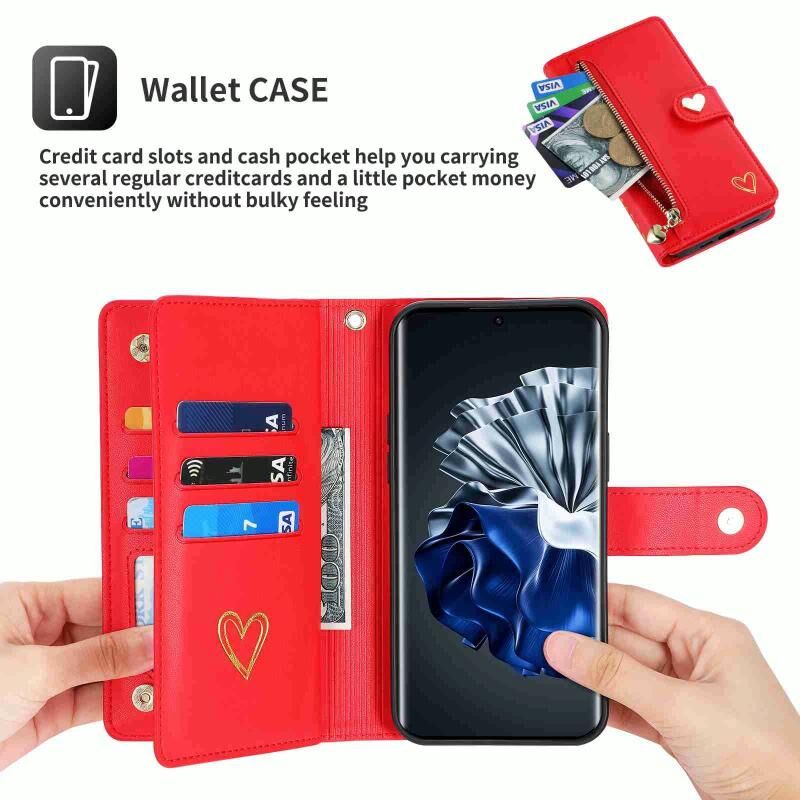 Για Huawei P60 Pro POLA Love Multi-Card Slots φερμουάρ πορτοφόλι δερμάτινη θήκη τηλεφώνου (κόκκινο) (POLA)