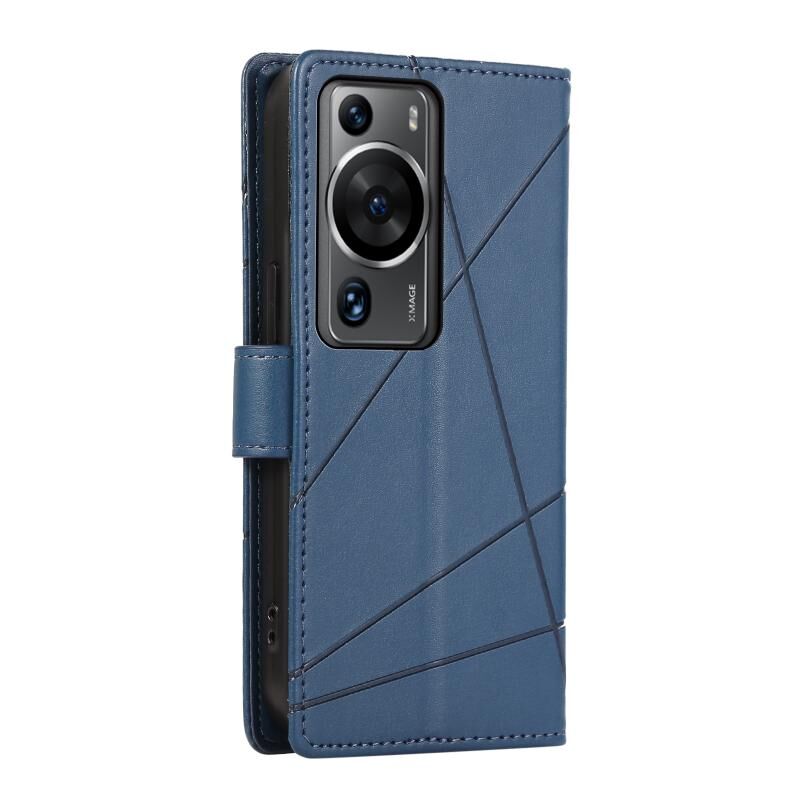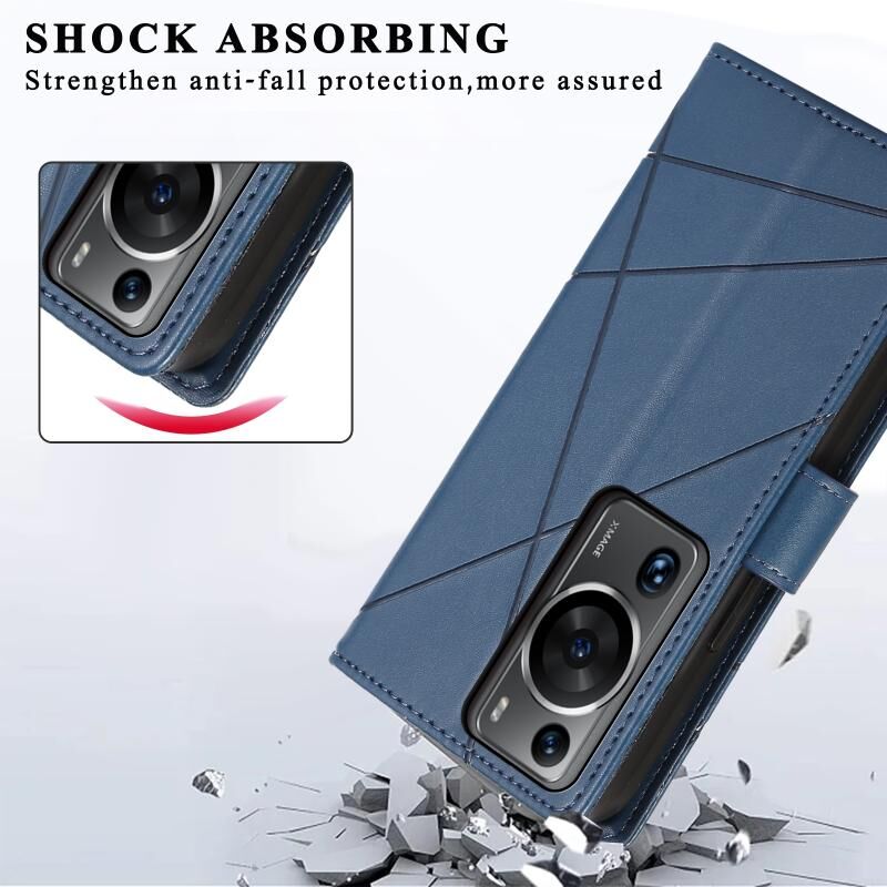 Θήκη τηλεφώνου Huawei P60 Pro από γνήσιο δέρμα PU με ανάγλυφη υφή και λεπτομέρειες γραμμής (Μπλε)