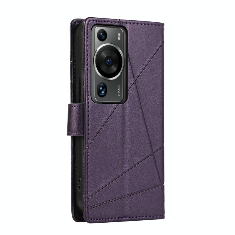 For Huawei P60 Pro PU Genuine Leather Texture Embossed Line Phone Case(Purple)