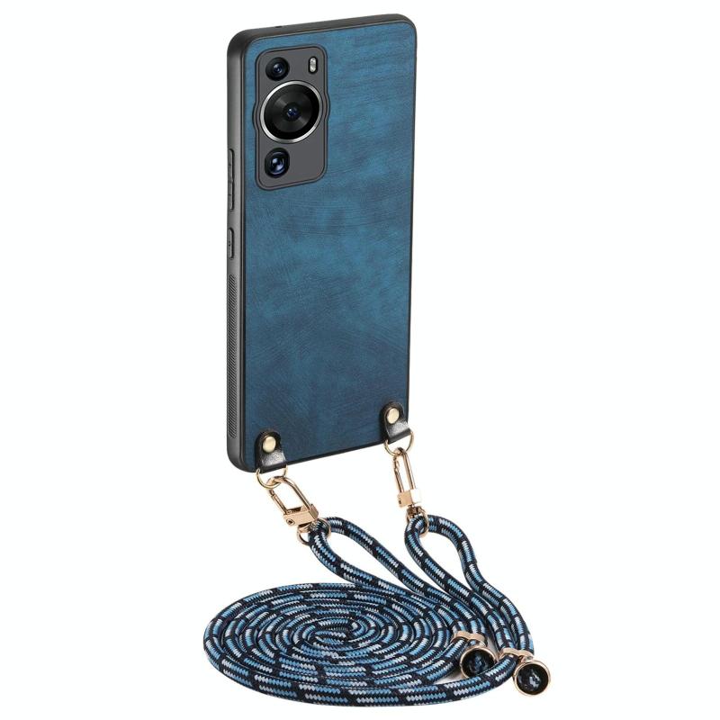 Θήκη κινητού Huawei P60 Pro από δέρμα vintage και PC με λουρί crossbody (Μπλε)
