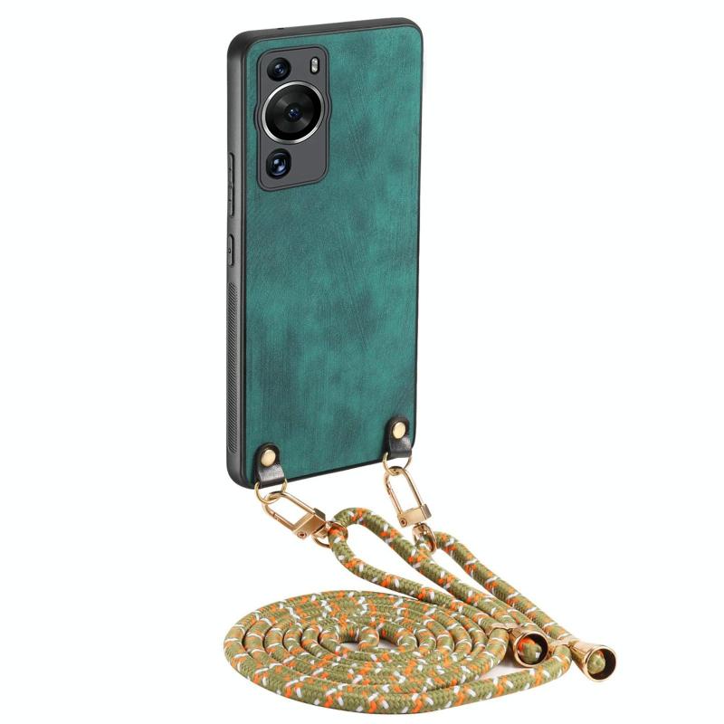 Θήκη κινητού Huawei P60 Pro από δέρμα vintage και PC με λουρί crossbody (Μπλε)