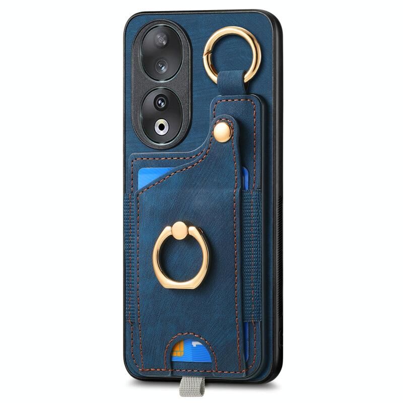 Για Huawei P60 Ρετρό δέρμα αίσθηση δαχτυλίδι κάρτα τσάντα υπόθεση τηλεφώνου με Hang Loop (μπλε)