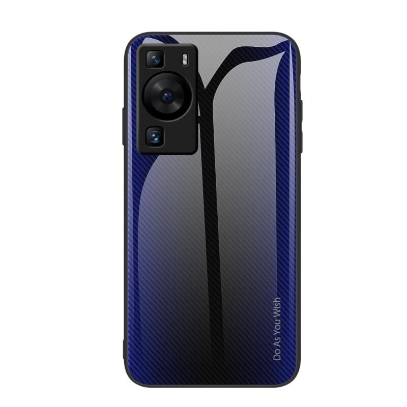 Για Huawei P60 Υφή διαβάθμιση γυαλί TPU τηλέφωνο υπόθεση (σκούρο μπλε)