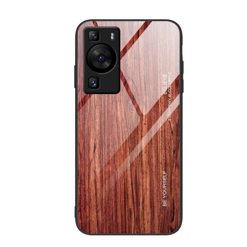 Για Huawei P60 Wood Grain Glass Phone Case (Coffee)