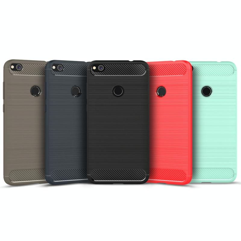 For Huawei P8 Lite (2017) Brushed Carbon Fiber Texture Shockproof TPU Protective Case(Dark Blue)