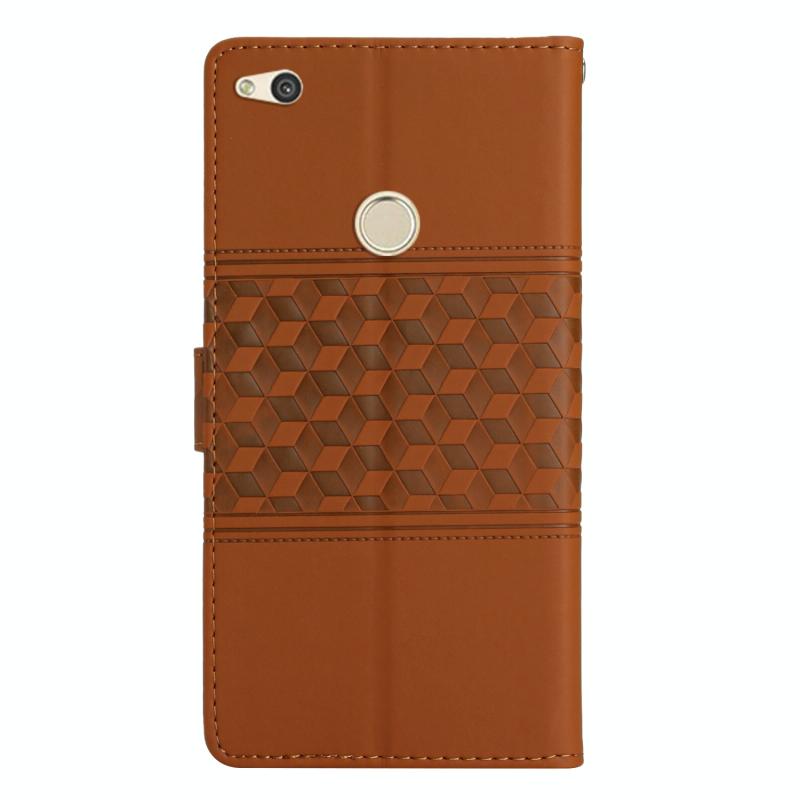 Θήκη τηλεφώνου δερμάτινη με ανάγλυφο σχέδιο διαμαντιού για Huawei P8 Lite 2017 με κορδόνι (Καφέ)