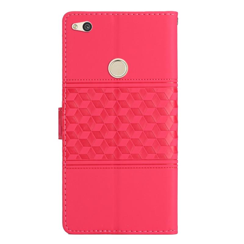 Θήκη τηλεφώνου δερμάτινη με ανάγλυφο σχέδιο διαμαντιού για Huawei P8 Lite 2017 με κορδόνι (Κόκκινο)